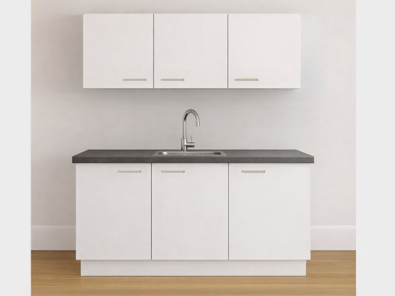 Dit Basic keukenblok is praktisch, overzichtelijk en betaalbaar en wordt geleverd als losse 3 voorgemonteerde onderkasten en 3 voorgemonteerde hangkasten met een apart werkblad en plinten.